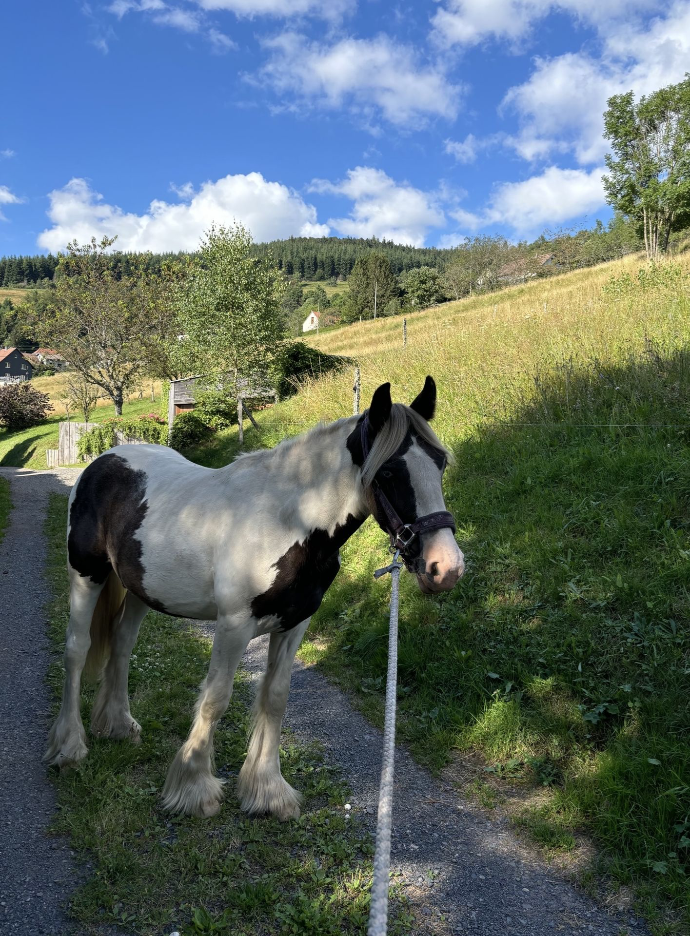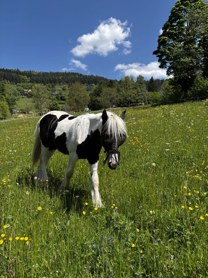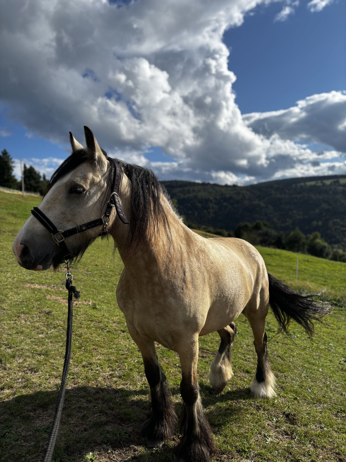 Un amour d’étalon, proche de l’homme. Il est de caractère plus énergique et toujours volontaire pour des balades à calèche ou avec des enfants. Il a saillis Lili en 2024.